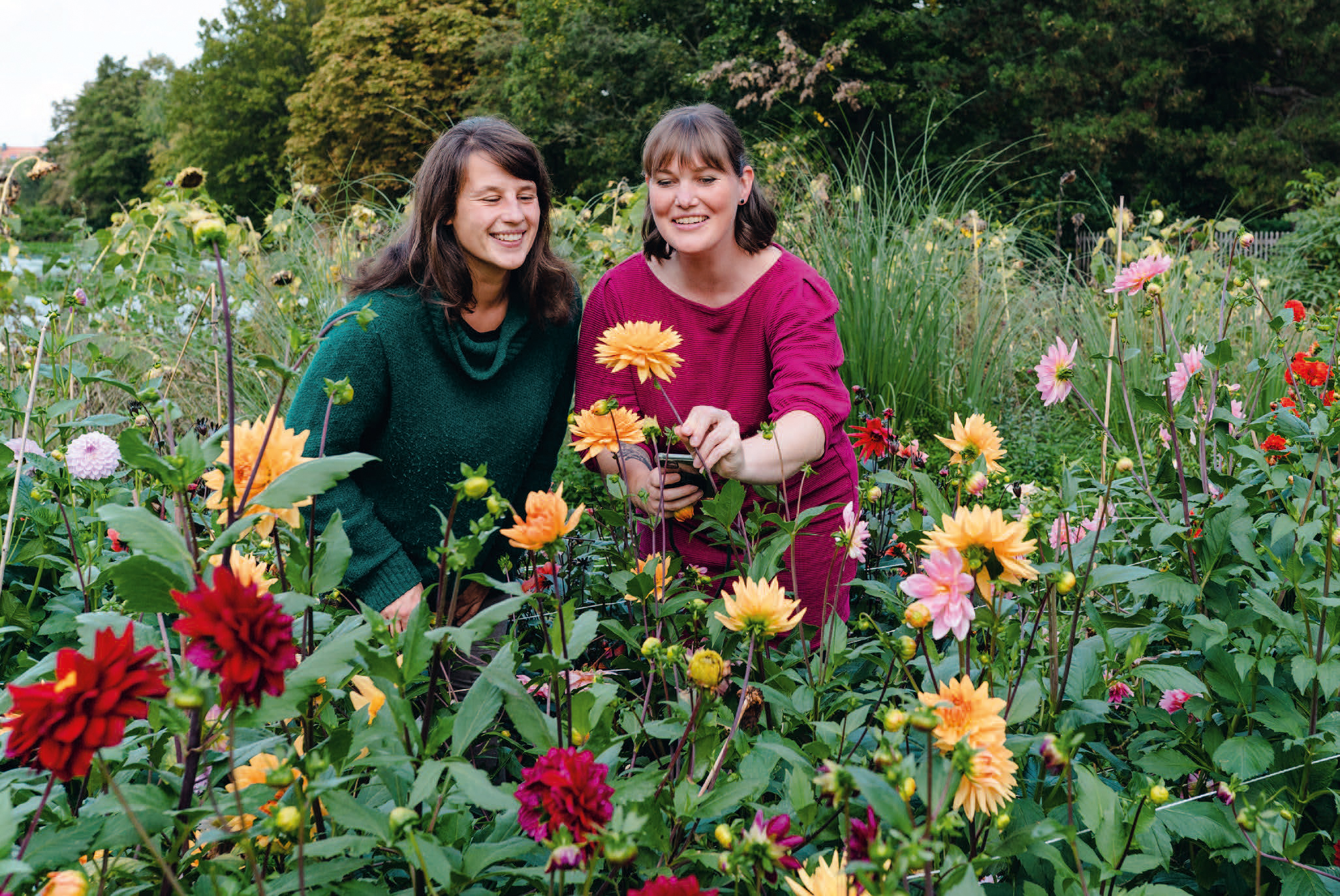 Chantal Remmert (links) ist studierte Landschaftsarchitektin und Mitbegründerin der Slowflower-Bewegung, arbeitet unter dem Namen Erna Primula – Blumen Studio und baut seit 2018 Slowflowers in Leipzig an. Inzwischen ist die Gärtnerei von Leipzig ins baden-württembergische Schwäbisch Halll umgezogen.