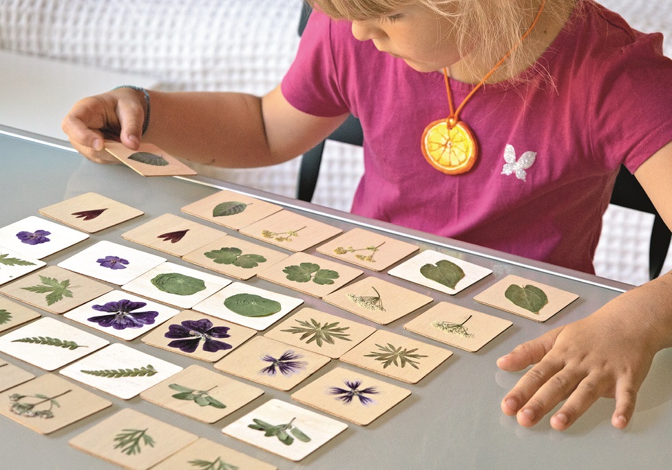Memory-Spiel mit Blüten und Blättern