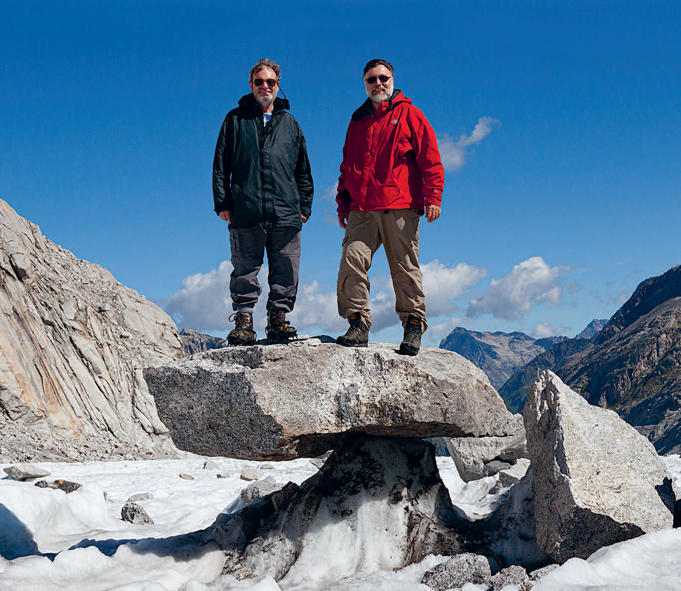 Prof. Michael Hambrey (links) studierte Geografie und Geologie an der University of Manchester, wo er auch in Glaziologie doktorierte. Nach Forschungspositionen an der ETH Zürich, der University of Cambridge und Lehrtätigkeit an der Liverpool John Moores University war er bis zur Emeritierung an der Aberystwyth University in Wales tätig. Von Königin Elizabeth II wurde er zweimal mit der «Polar Medal» ausgezeichnet und erhielt die «SCAR Medal for Excellence in Antarctic Research». Er hat zahlreiche Artikel und Lehrbücher über Glaziologie und Geologie verfasst.