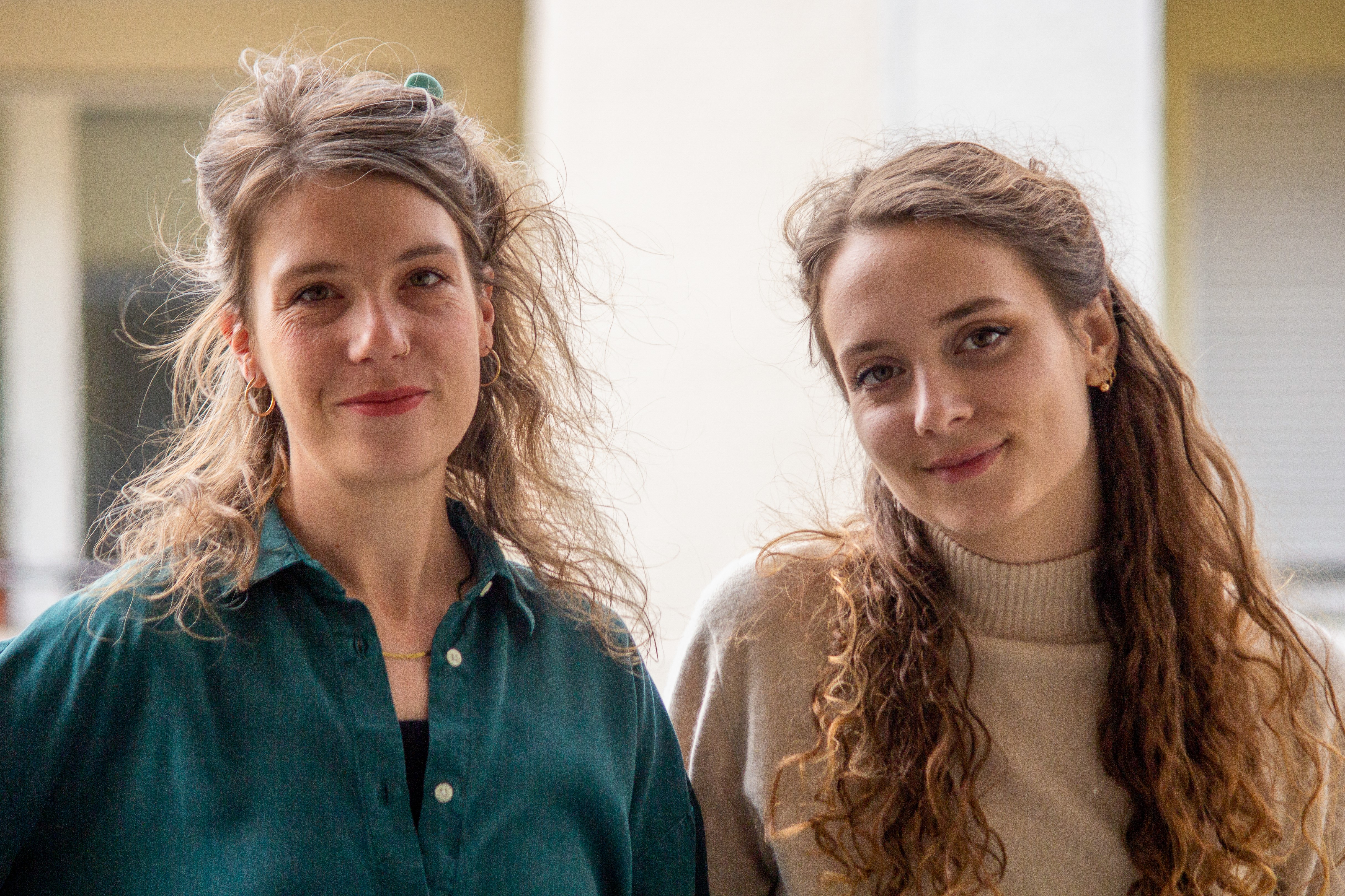 Réka Szücs (rechts im Bild) absolvierte 2023 an der Hochschule der Künste Bern den Master in Art Education und arbeitet als Kunstvermittlerin, Illustratiorin und Fotografin. In ihren künstlerischen Arbeiten beschäftigt sie sich kritisch mit Darstellungsweisen von Frauen und gesellschaftlichen Normierungen.