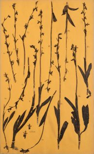 Herbarisierte Exemplare der Fliegen-Ragwurz (Ophris insectifera; links) mit der Fundortliste (Mitte) und den originalen Herbaretiketten (rechts). Um 1900 war diese Orchideenart in vielen lichten Föhrenwäldern und auf Magerwiesen anzutreffen. Heute ist sie selten. Foto: Vereinigte Herbarien der Universität und ETH Zürich